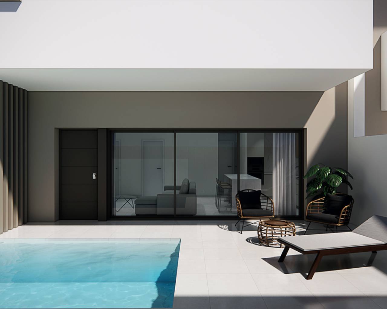 The interior of the bungalows is designed with a focus on functionality and comfort. The homes offer options of 2 or 3 bedrooms, adapting to different family sizes or space needs. Each bungalow includes 2 bathrooms, ensuring comfort for all residents. Built-in wardrobes are a standard feature, providing efficient storage and keeping spaces tidy. The pre-installation of air conditioning ensures the home is ready to maintain a pleasant temperature year-round. Included appliances make daily life easier, while the porcelain tile flooring adds a touch of elegance and durability to the spaces.