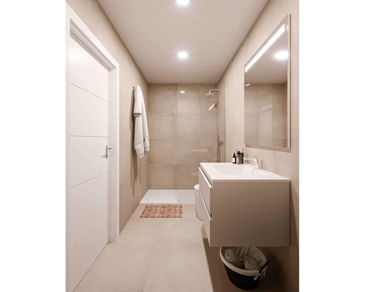 The exteriors of these bungalows are designed to offer a space for relaxation and outdoor enjoyment. Each property features a private garden, ideal for enjoying the Mediterranean climate. Additionally, the terraces provide extra space for outdoor leisure, while the solarium is perfect for sunbathing in complete privacy. The presence of a pergola adds a touch of elegance and functionality, allowing for shaded outdoor moments. The jacuzzi is a standout feature that offers a space for relaxation and wellness in the comfort of your home.