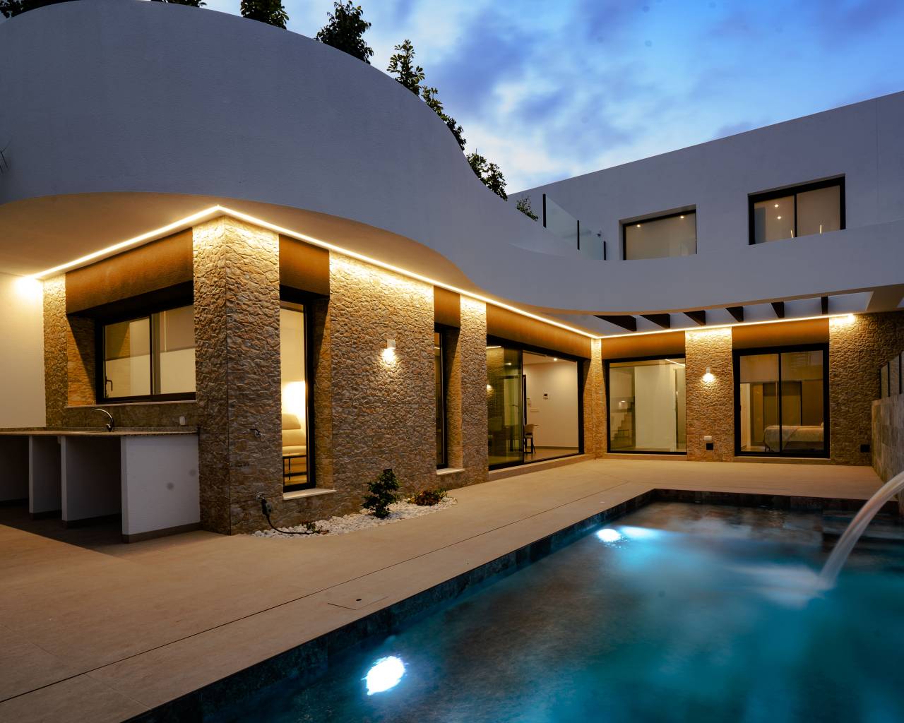 The outdoor spaces of these townhouses in Heredades are designed to maximize enjoyment of the Mediterranean climate. Each property features a private garden, perfect for creating a personal oasis of tranquility or for enjoying outdoor activities with the family. The presence of a pergola adds a touch of elegance and functionality, providing shade and an ideal space for relaxation or entertaining guests. Additionally, each townhouse has a private pool, offering a refreshing spot to combat the summer heat and enjoy leisure moments in the comfort of your home. The terrace, another attractive outdoor feature, presents a versatile space to enjoy the views and fresh air.