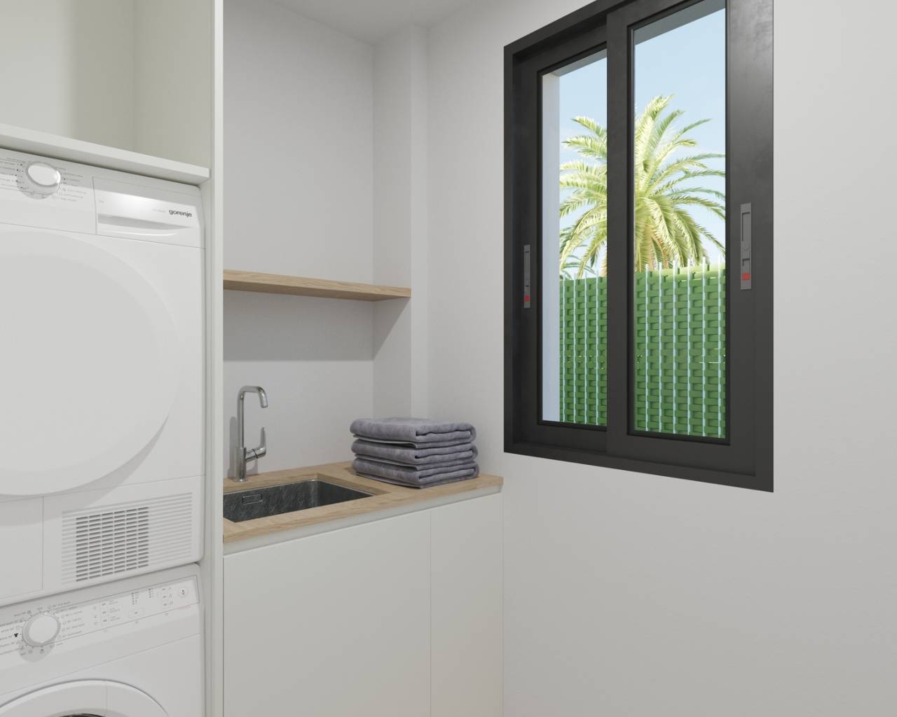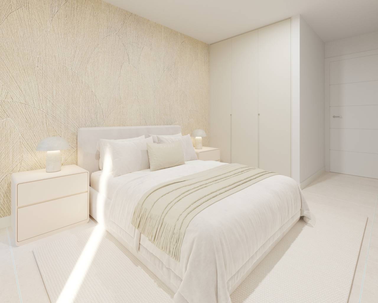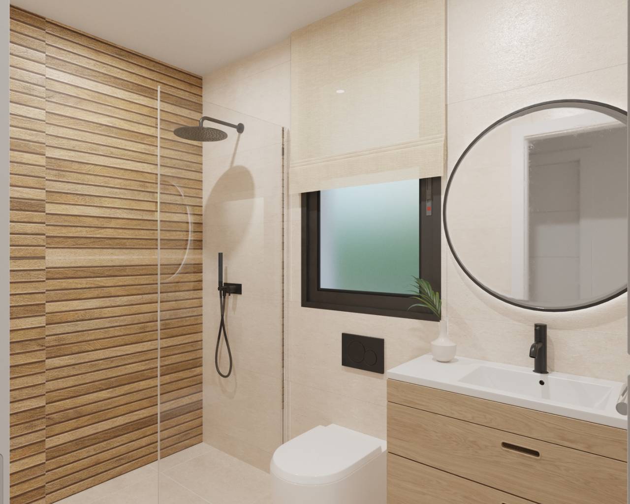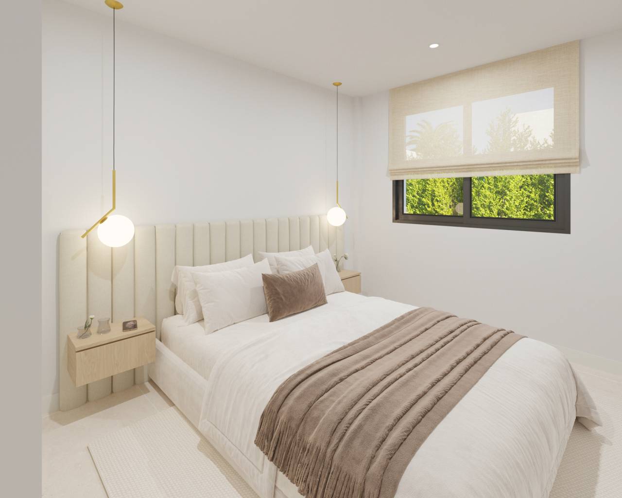 The interior of these detached homes is designed to maximize comfort and functionality. With three bedrooms and two bathrooms, each space is carefully laid out to offer comfort and privacy. Porcelain tile floors add a touch of elegance and durability. Electric shutters and built-in wardrobes are standard features that enhance the home's functionality. Additionally, the pre-installation of air conditioning ensures that the indoor climate is always suitable, adapting to the needs of each season.