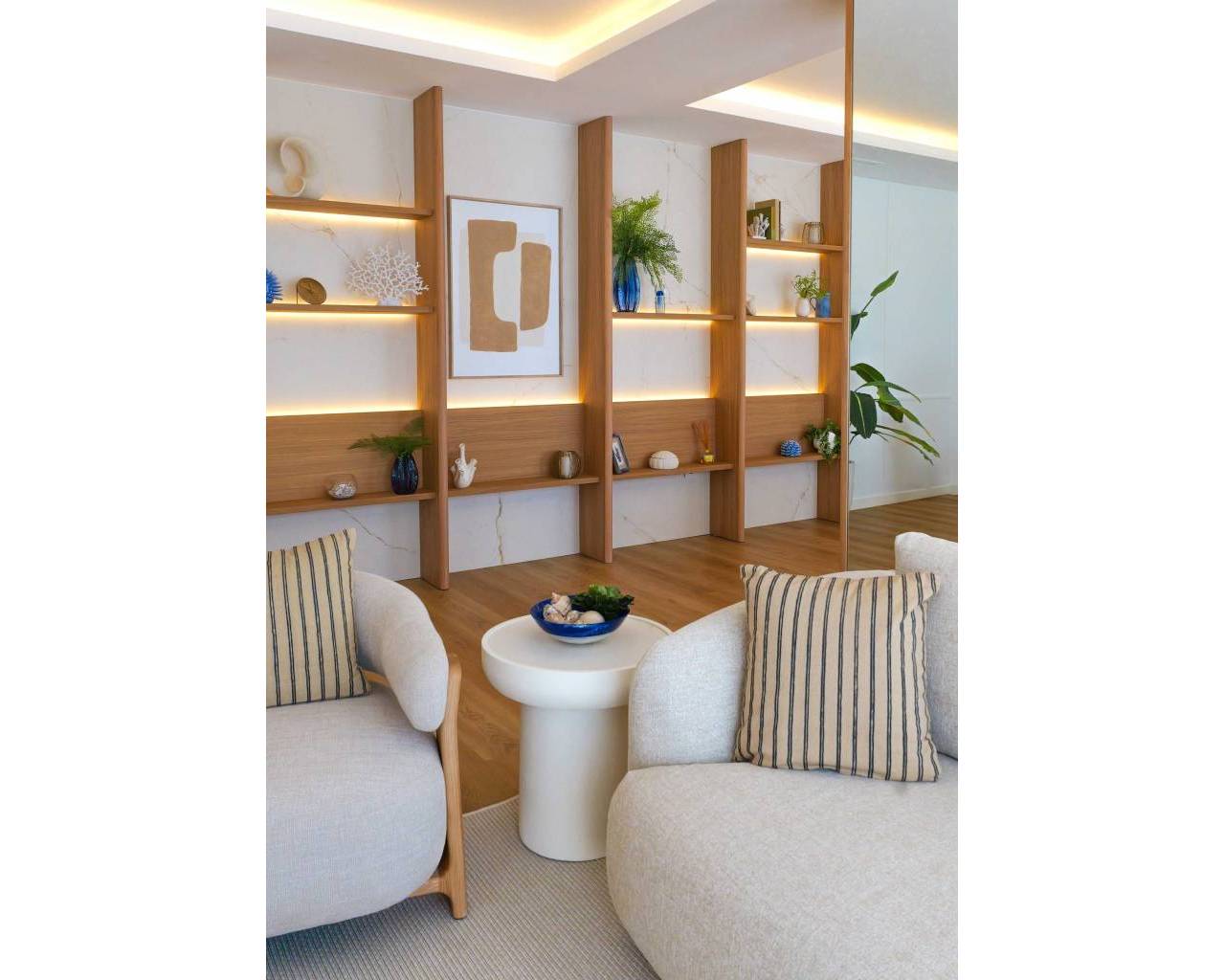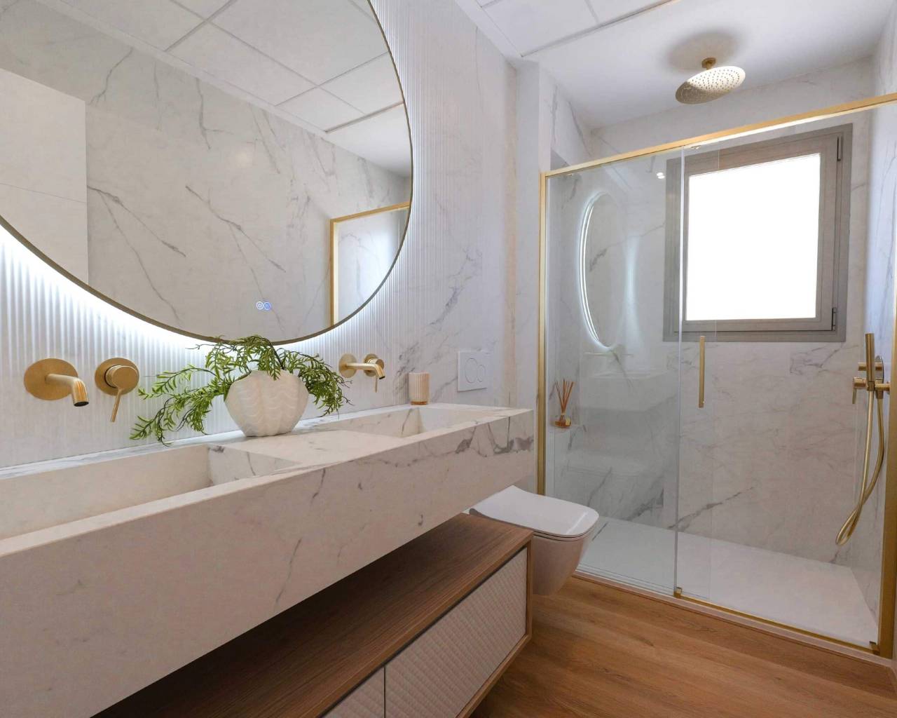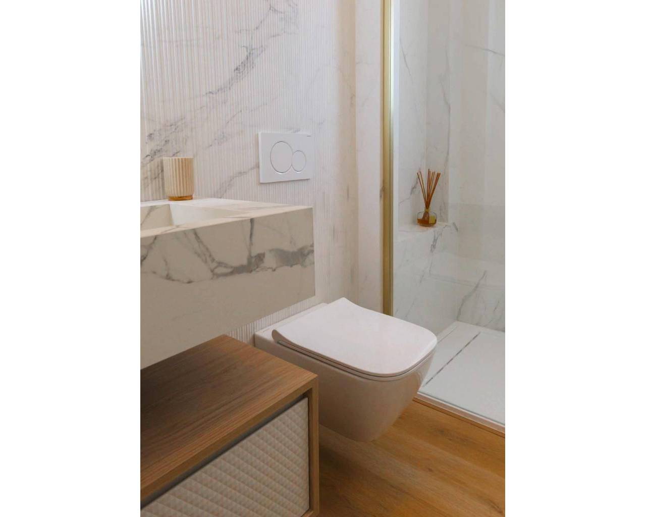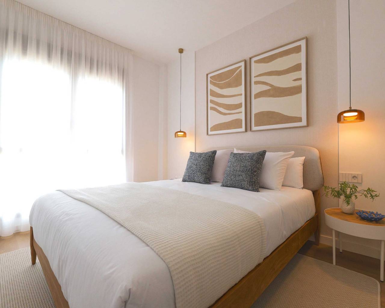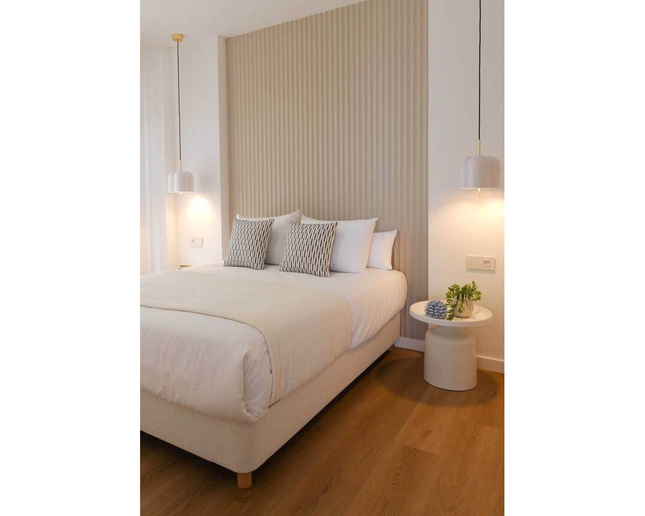 The interior design of the homes in this residential complex in La Manga is crafted to offer maximum comfort and functionality. The available apartments and penthouses feature layouts that include options of 1, 2, and 3 bedrooms, as well as 1, 2, and 3 bathrooms, catering to the needs of different family types. Porcelain tile floors add a modern and elegant touch, while integrated appliances ensure a comfortable and efficient living experience. Built-in wardrobes are designed to optimize space, providing practical and aesthetic storage solutions. Every detail has been carefully considered to create a welcoming and sophisticated environment.