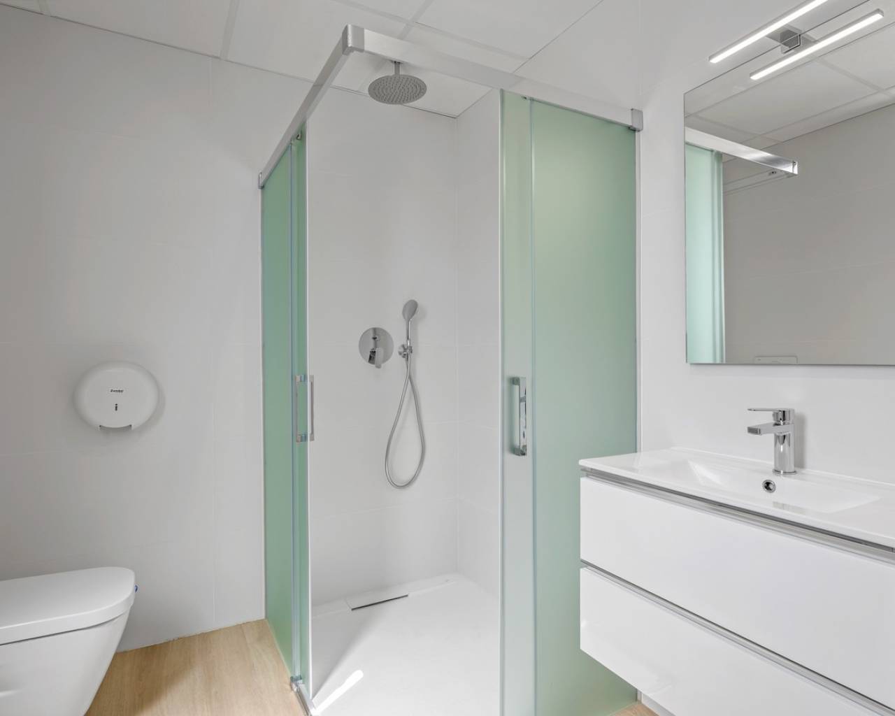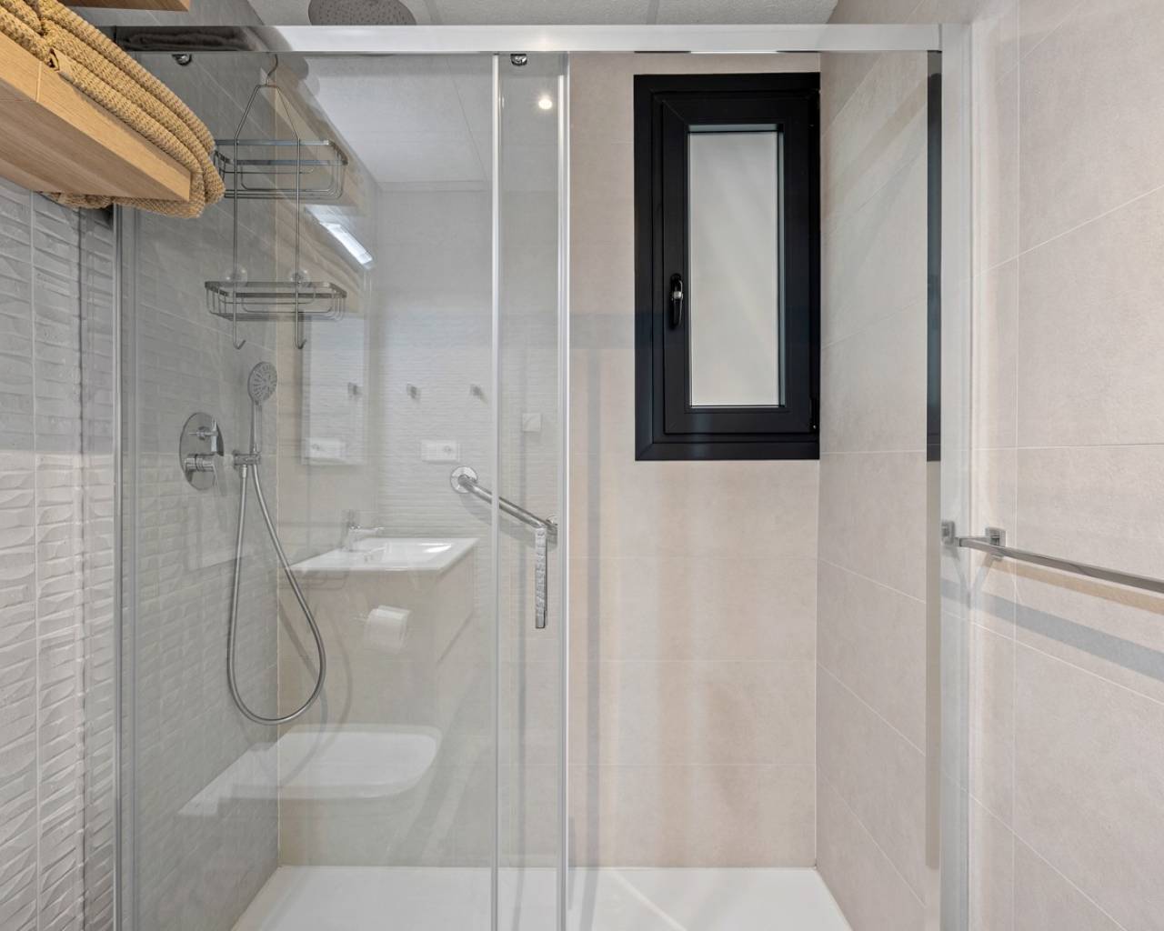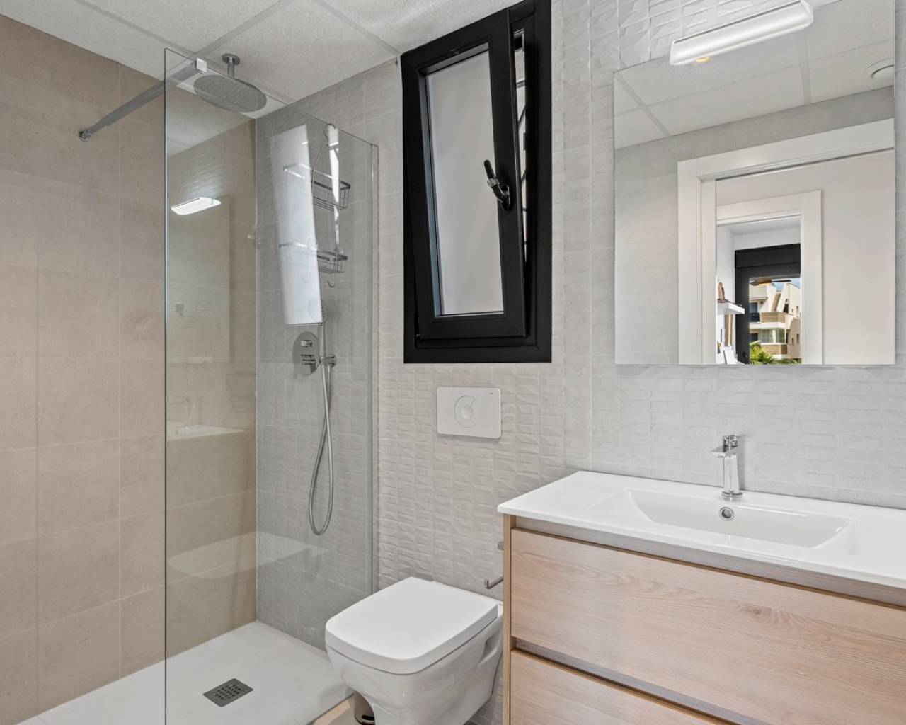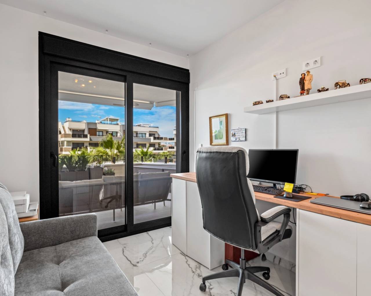 Luxury apartment in Resort Amanecer X, located in the popular area of Los Altos in Orihuela Costa. This stylish and contemporary apartment was completed in 2024 and represents an excellent opportunity as a holiday home, permanent residence, or investment with strong rental potential. The apartment features a bright, open-plan living room with kitchen and dining area, designed to maximize space and natural light. Large windows create an airy atmosphere and provide direct access to a spacious private terrace, seamlessly blending indoor and outdoor living. The kitchen is fully equipped with modern appliances and finished in a sleek, contemporary style that integrates perfectly with the living space. There are two spacious bedrooms, both with built-in wardrobes and located on the terrace side of the apartment, as well as two modern bathrooms finished to a high standard. The apartment is sold fully furnished and has a total surface area of 65 m², offering a practical and well-balanced layout. One of the standout features is the generous private terrace of over 25 m², overlooking the landscaped gardens and communal swimming pool. Thanks to its southwest orientation, the terrace enjoys excellent sun exposure, making it ideal for relaxing or outdoor dining. The apartment is located on the first floor of building number 8 with an elevator and includes an underground parking space and a private storage room. It is equipped with air conditioning, an Airzone climate control system, underfloor heating in the bathrooms, and electric shutters, ensuring year-round comfort. The property is in perfect condition, fully furnished, and ready to move in! Residents of Amanecer X enjoy a resort-style environment with access to a large communal swimming pool, a children’s pool, a fully equipped gym, as well as a jacuzzi and sauna. All of this is surrounded by beautifully maintained tropical gardens with adapted access for people with reduced mobility. The location is highly convenient: restaurants, cafés, and supermarkets are within walking distance, and La Zenia Boulevard is just a few minutes’ drive away. For golf enthusiasts, the area offers a wide selection of nearby courses, including Villamartín Golf just 5 minutes away, Real Club de Golf Campoamor and Las Ramblas Golf within approximately 10 minutes, and the prestigious Las Colinas Golf & Country Club about 15 minutes from the apartment. The sandy beaches of Orihuela Costa, such as La Zenia Beach, Playa Flamenca, Cabo Roig, and Campoamor, are all within a 10-minute drive. The apartment is ideally located between two major airports, offering excellent connections: Alicante Airport is approximately 45 minutes away, and Murcia International Airport is around 35 to 40 minutes by car.